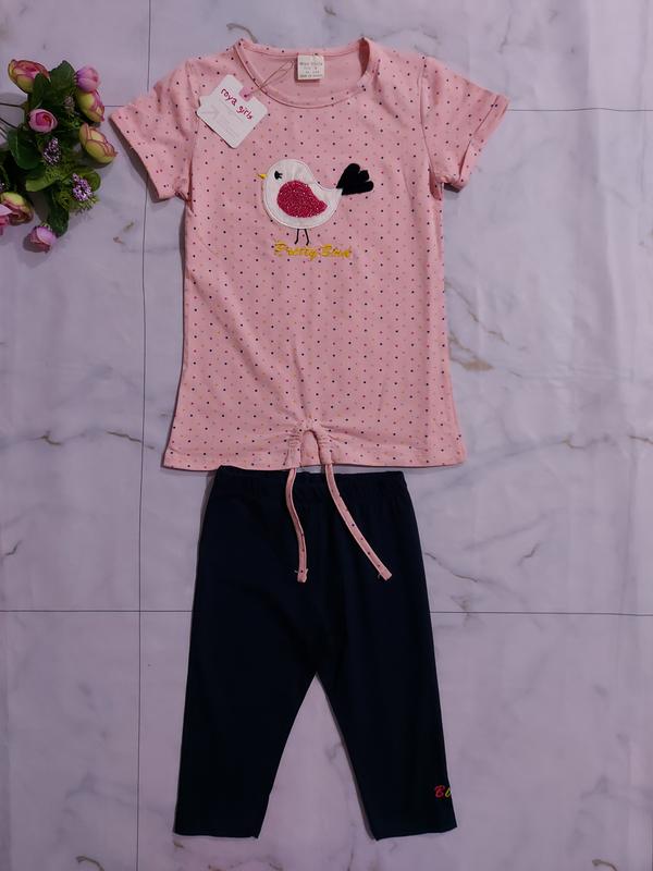 🌞 Летний костюм для девочек с птичкой 🌞 Размер:5-6-7-8 лет(при выборе размера ориентируйтесь на замеры) Состав:95%-cotton,5%-lycra Цвет футболки молочный и розовый в мелкий горошек,аппликация пришита Производитель Турция 💰Цена 220 грн 📐ЗАМЕРЫ: Футболка:полуобхват груди/длина 5л.-29/43 6л.-30/44 7л.-31/45 8л.-31/47 Капри:полуобхват талии/длина/шаг 5л.-20/38/21 6л.-21/39/22 7л.-21/41/24 8л.-22/42/25 Отправка Новой почтой, Justin и УкрПочтой ежедневно. Есть наложенный платеж по минимальной предоплате 100 грн.(гарантия того что Вы заберёте заказ) Каждому покупателю подарок🎁