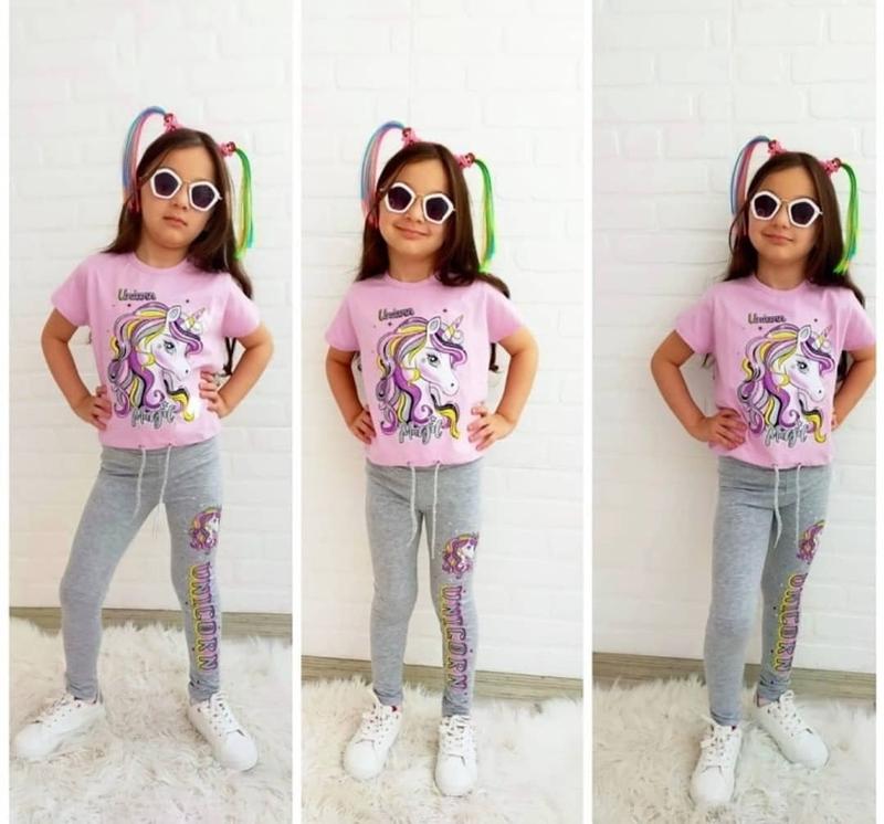 В НАЛИЧИИ 🌺 Крутой костюм для девочки, с ярким принтом, футболка-топ, лосины. Рекомендую 👍👍👍 Производитель - Турция 95% коттон / 5% лукра Очень классное качество 👍 ❤️ Возраст 🍭3-4 (1) Замеры 📏3-4 футболка- длина 33см, ширина 32см, лосины- длина 53см, шаг 38см.