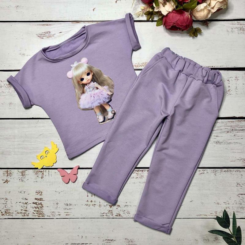 Костюмчик. Колір коричневий. Нашивка кукла на футболке Турецкая двунитка. 56р (98-104см) 60р (110-116см) 64р (122см) 68р (128см).