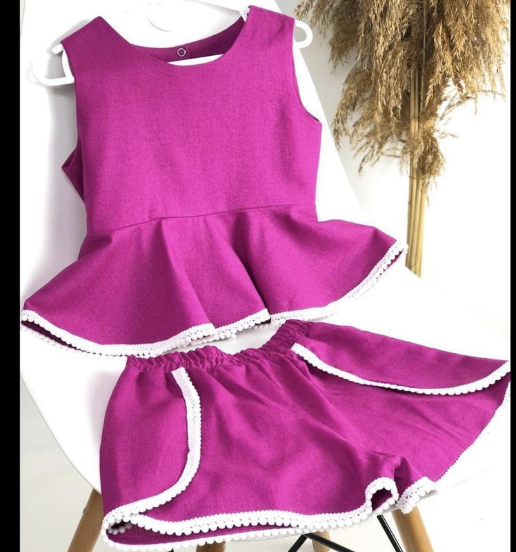 Топ баска колір фуксія та шорти з стильним оздобленням