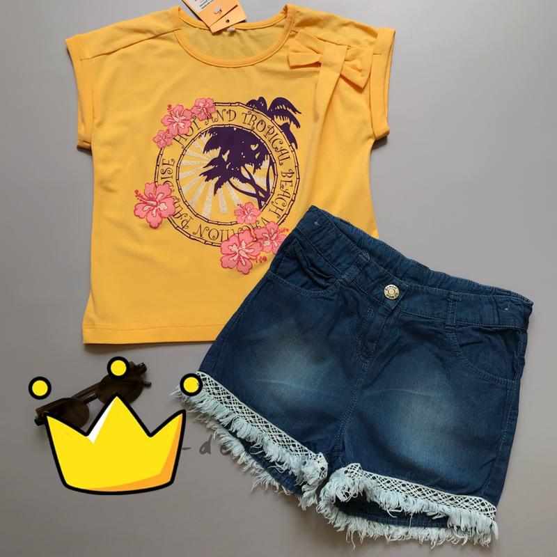 КС633 Костюм дівочий, з джинсовими короткими шортами, супрем+джинс (ФБ: 95% бавовна, 5% еластан; ШР: 100% бавовна), р.,110