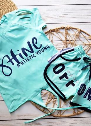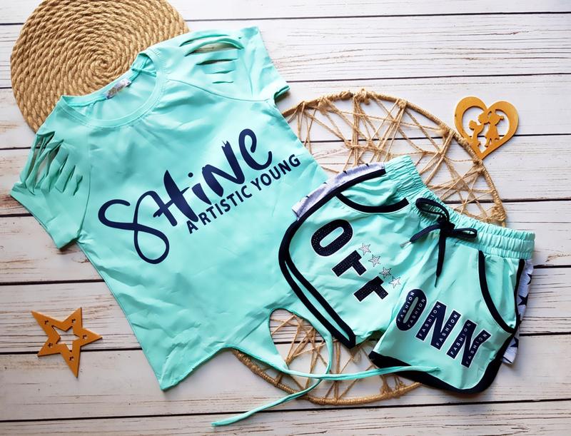 Арт 0924 ❤ В наличии ✔Комплект для девочек 💴 Цена- 370 грн (опт 348 ) 🚀 Доставка 1-2 дня 100% хлопок 📝 Замеры: 170- длина -47см.,ширина - 42см.,.длина шорт-26см., пояс- 32см Наличие: 170 перед покупкой уточняйте наличие товара