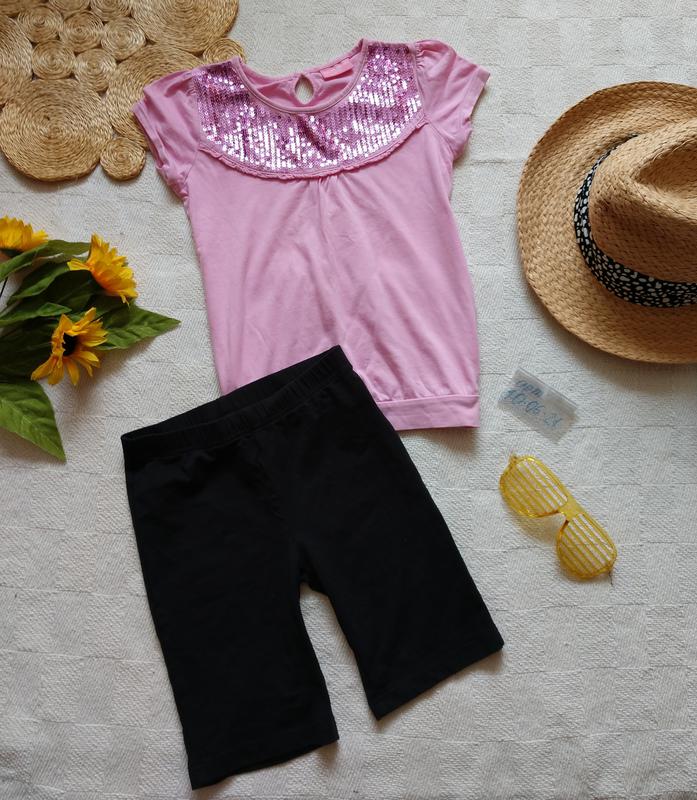 комплект розовая футболка LC Waikiki 8 лет грудь 35 спинка 47 чёрные однотонные леггинсы 134_140см хлопок пояс 27 39 бёдра 33 46 длина 35 комплект в идеальном состоянии