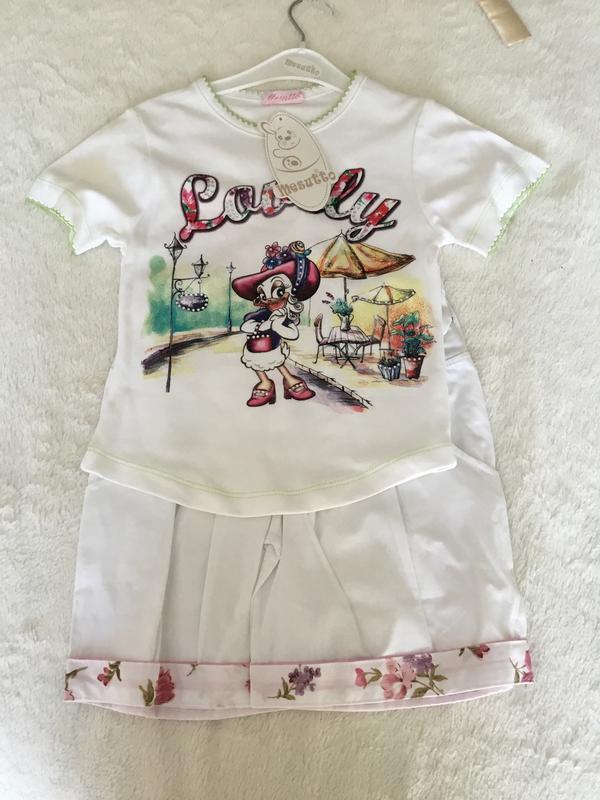 Летний костюм для девочки в белом цвете с принтом производства Турция. На шортах ткань cotton. Размер 6 и 8 лет. Состав 100% хлопок Внимание! Дополнительная информация по товару и фото по запросу в VIBER +38(**********