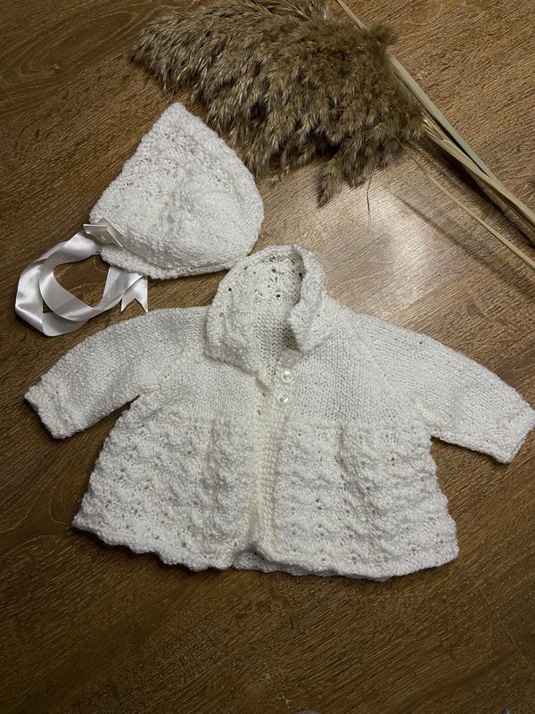 Вязаный комплект кофточка и шапочка для девочки