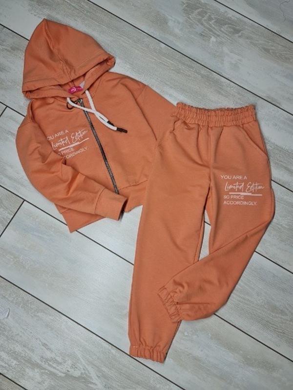 Стильный спортивный костюмчик ткань двухнитка , кофточка застегивается на молнию , рукава на манжетах , в штанишках есть кармашки , в поясе широкая резинка цена 580 грн рукав от горловины длина /рукав/пог/длина/шаг/пояс 110-39/51/34/67/47/23 116-42/55/35/70/50/24 122-45/59/36/73/52/26 128-48/60/37/76/55/27 134-50/62/38/80/57/28