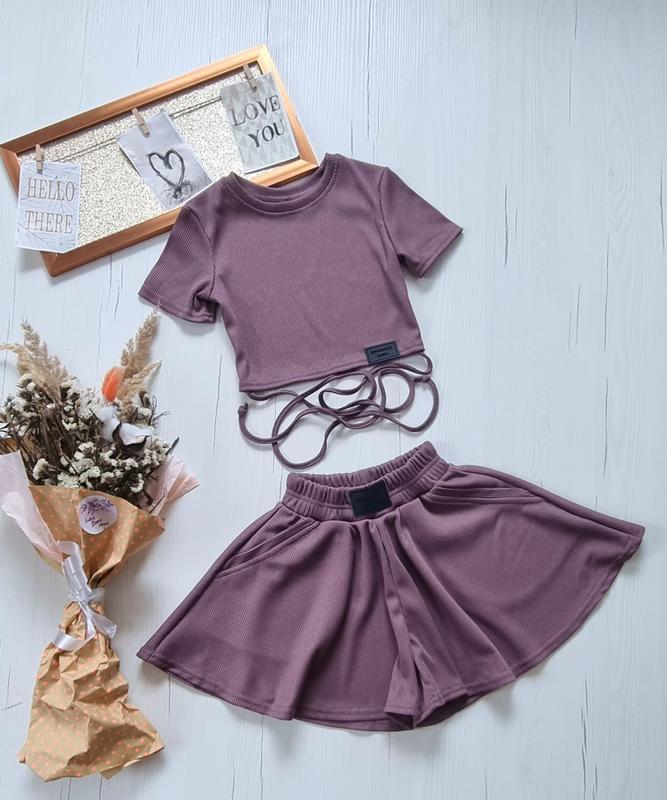 Літній костюмчик двійка топ+юбка-шорти тканина трикотаж мустанг рубчик чудова якість Рекомендую!!! 128(1 шт) довжина топа 24;пог 30,довжина шортів 34;пояс 24 134(1 шт)-довжина топа-25;пог-31;довжина шортів-34;пояс-25 140(1 шт)-довжина топа-26,пог-32;довжина шортів-34,пояс-26 146(1 шт)-довжина топа-27,пог -33;довжина шортів- 35,пояс-26 152(1 шт)-довжина топа-28,пог- 36,довжина шортів- 37,пояс-28 +- 1 см