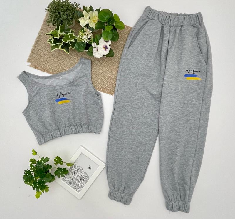 🌻Костюм спортивний з накатом штани під резинку з кишенями 🌻тканина- двонитка ПОВНОМІРНІ РЕКОМЕНДУЮ! розмір/🌻довж.топа/пог/🌻довж. штанів/крок/пот/поб 140/🌻31/37🌻81/57/24/49/- 146/🌻34/39🌻84/62/26/50/- 152/🌻34/41🌻88/66/28/49/- 158/🌻36/42🌻91/68/29/51/- 164/🌻38/43🌻97/73/30/52/- +-2см