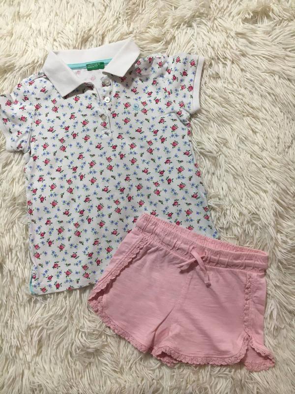 Модный набор , 2-3 года , футболка поло и шорты с кружевом