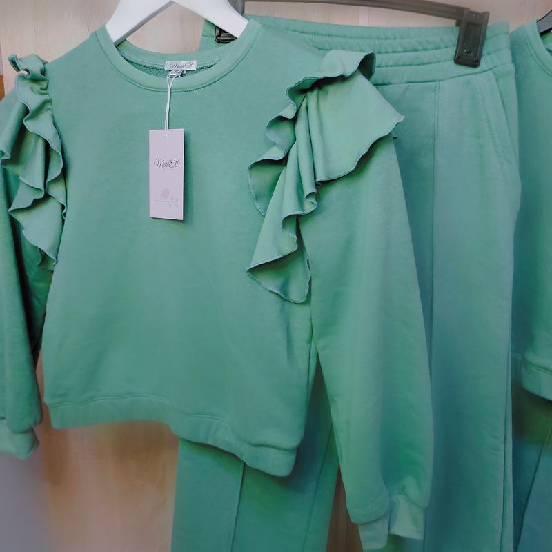Костюм ТМ Mariell Світшот вільного покрою з оригінальною вставочкою на плечах, що придає особливості костюму) Брюки широкі , легкі з кишенями. Пошив індивідуальний з якісних тканин. Колір як на першому фото. Розміри: 122,128,134,140,146 Відправка Нп