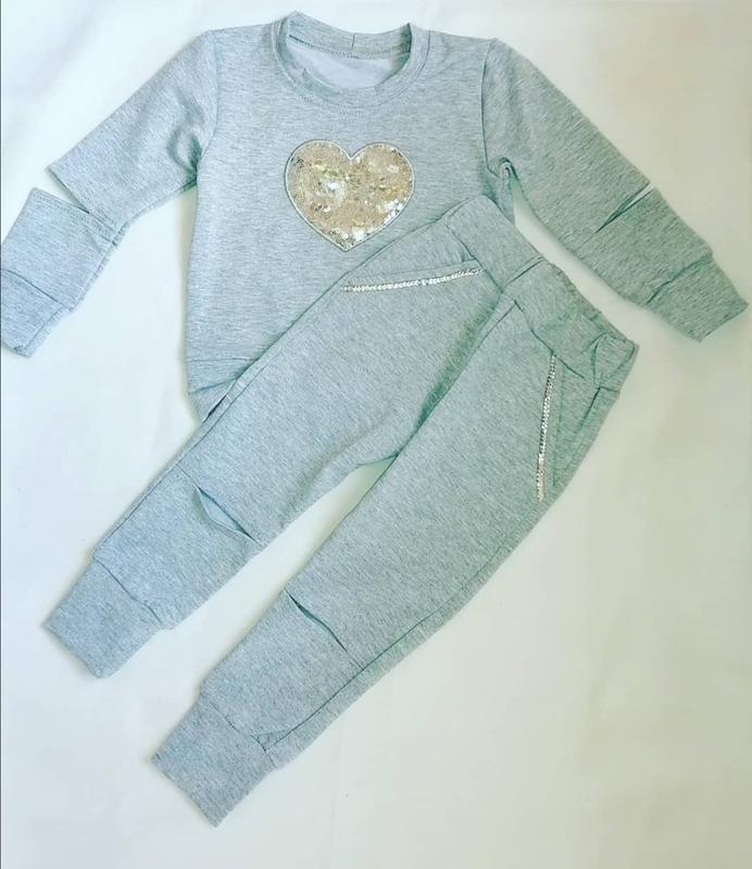 Костюм для дівчинки полотно:двухнитка (футер стрейч) без начосу з розрізами на колінах і ліктях в наявності: 56 розмір (92-98 см) : Довжина світшоту-35 см, рукав від плеча-30 см. Довжина штанів-51 см, крок-32 см Є сірий і бордовий 100% оплата на картку, відправляю зручним для вас способом