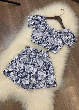 Яскравий костюмчик для модниці топ і шортики, тканина льон. довжина/пог/довжина шорт/пот 134-32/38/34/23 140-33/39/34/24 146-34/39/35/25 152-36/42/36/26 158-37/44/37/27 164-39/45/39/29 арtmasya