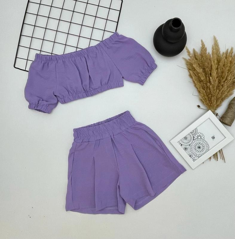 Крутий літній костюм топ+шортики тканина софт жатка шорти з кишенями суперова якість! зріст/довж.топа по середині/ширина по нижній резинці/довж.шорт/пот похибка+-2см 128/17/24/30/23-3шт 134/18/25/31/24-1шт 146/20/29/32/26-1шт