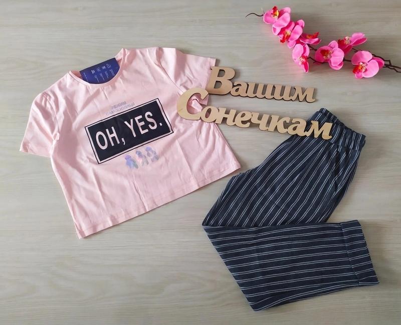 350грн Шикарний комплект топ +укорочені брюки тканина супрем і трикотаж, накат подвійний прорезинений в штанішках є кишенькі , в поясі не туга резинка 134-1шт 140-1шт топ довжина \пог брюки довжина\шаг\пояс 134р-36\37-69\45\24 140р-37\38-73\49\25 код 812