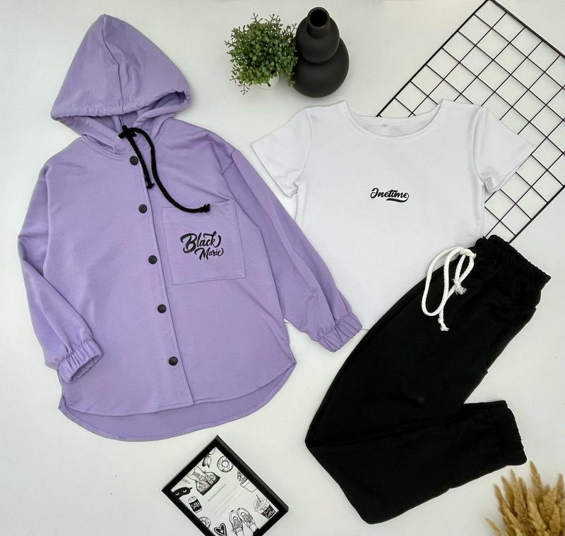 🌻Крутий костюм трійка сорочка+футболка+штани з капюшоном на кнопках штани з кишенями під резинку, є утяжка 🌻тканина- двонитка ПОВНОМІРНІ (надписи можуть бути іншими) РЕКОМЕНДУЮ! розмір/🌻довж.сорочки попереду/пог/рукав від горловини/🌻довж.футболки/пог/🌻довж.штанів/крок/пот 140/🌻56/46/55/🌻43/38/🌻90/65/27-4шт 146/🌻58/47/57/🌻46/39/🌻93/70/28-1шт 152/🌻61/48/59/🌻48/40/🌻98/74/29-3шт 158/🌻63/50/62/🌻50/41/🌻100/76/30-3шт 164/🌻64/52/65/🌻52/52/🌻104/78/32-1шт +-2см