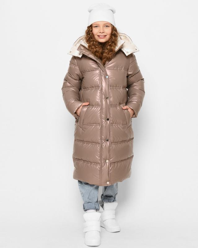 Пуховая куртка для девочек от 6 до 17 лет. Наполнитель экопух, легкий и гипоаллергенный, выдерживает холод до -25 °C. Капюшон (на молнии) с фиксацией на шнур и широким воротником на кнопках. Манжеты для дополнительной защиты от холода. Три кармана – 2 боковых, 1 внутренний. Застежка на молнию и кнопки. Низ куртки регулируется.