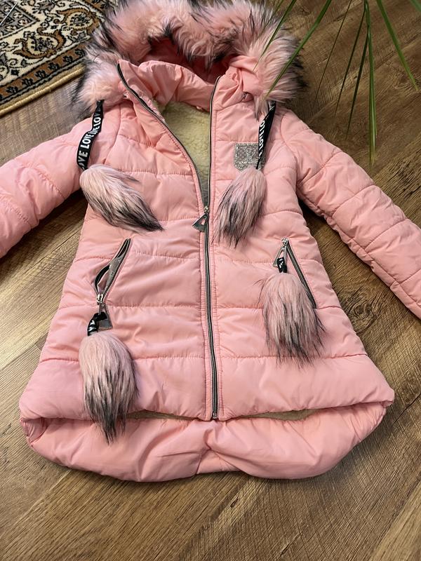 Пуховик, зимова куртка на овчині Капюшон знімається Колір насичено рожевий ШП38см ДР59см Дкуртки65см ПОГ43см