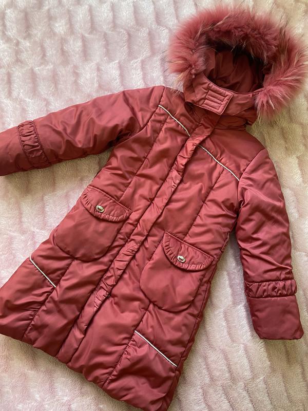 Для дівчинки 134 є не великі плями(при носці не видно)(прикріплене фото)але кинути в пральну машинку і як нова,застібається. При купівлі пуховика,друга річ яка є в наявності -10%)