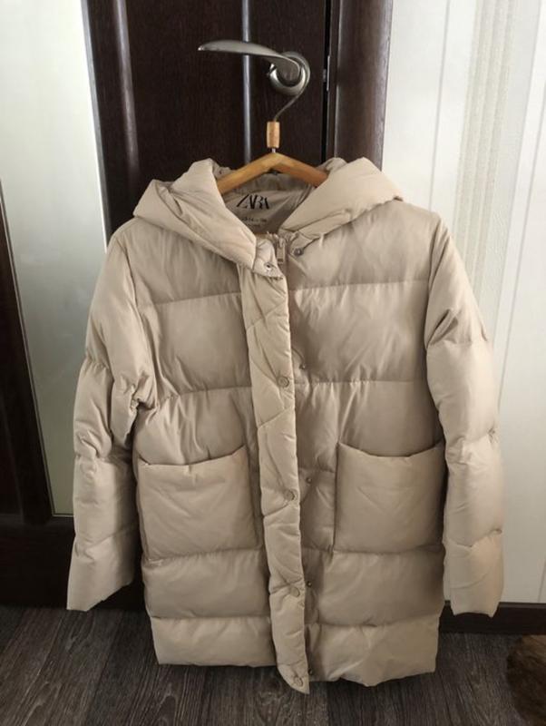 Натуральное пуховое пальто Zara (50/50), очень практичное и теплое рукав от плеча-58, от капюшона-70, пог-52, длина по спинке -77 Купленое в Штатах в октябре 2021