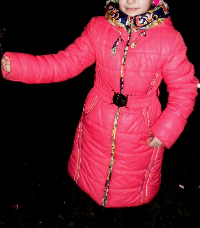 Зимове пальто для дівчинки на флісі, наповнювач тинсулейт (не деформується при пранні). Капюшон та хутро відстібаються. Хутро не дуже пухнасте, за бажання можна замінити. Блискавка прихована (останнє фото) працює добре, не змінювалася. На рукавах є резинки. Дуже тепле. Легко стирається у машинці, швидко сохне. Матеріал дуже міцний Колір кораловий. Є пояс і кольоровий шарфик із помпонами. Прослужило два сезони (брали на виріст). Довжина по спинці – 75 см, до талії – 34 см Довжина рукава – 55 см Ширина плечей – 38 см, Довжина плеча – 10 см Ширина спини – 45 см Розмір: 10/140, 9/134