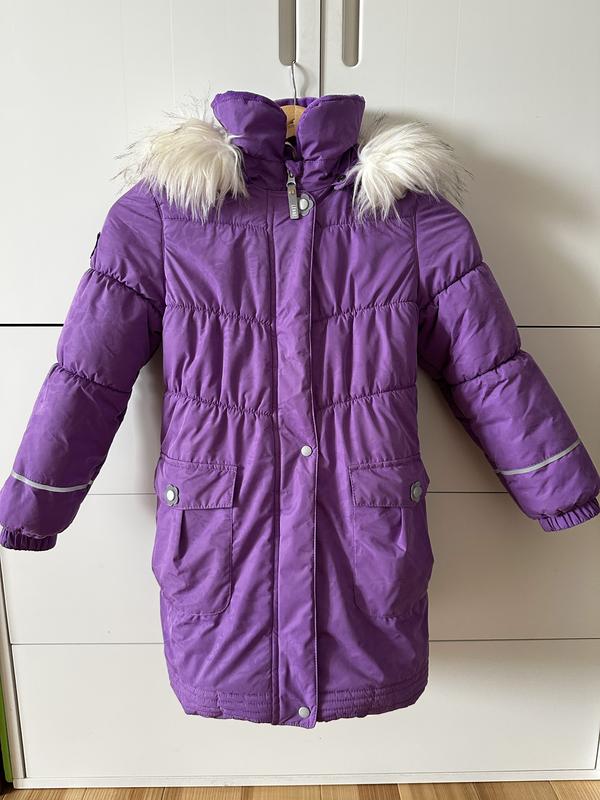 Дуже тепле і легеньке пальто 128(+6см), відстібний капюшон і хутро. Є маленький недолік(фото 3), майже непомітний. В цілому пальто в дуже доброму стані, в ньому дитина точно не змерзне!
