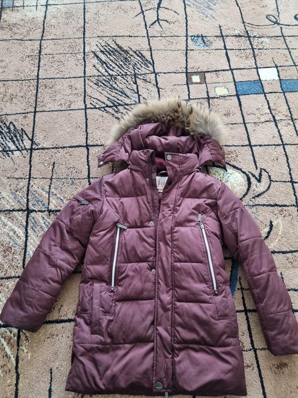 Очень теплая, легкая, стильная куртка для, девочки. Цвет переливается на свету, капюшон с натуральным мехом. Наполнитель не сбивается при стирке. Очень удобна для ежедневного использования. Рост 128, но крупномерит. В идеальном состоянии.