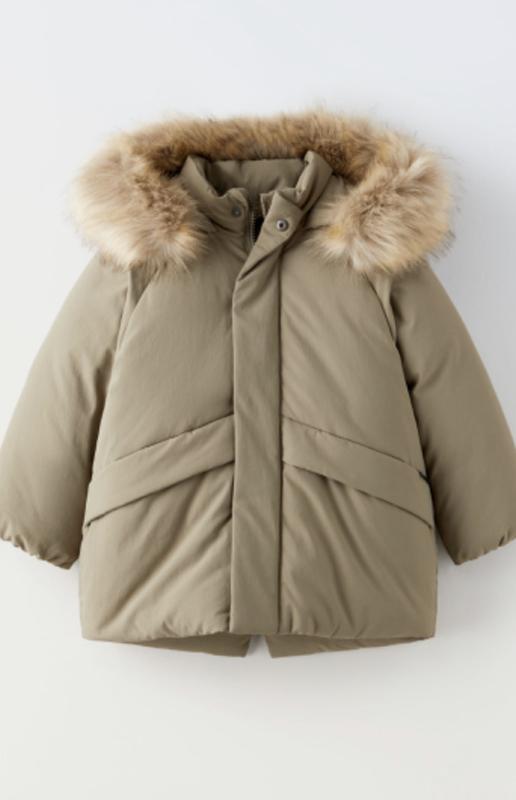 Пуховик от Zara.Теплиный без дефектов, но слипается мех на купишон.Трешки удлиненная сзади Замеры: Длина спереди 43см, сзади длина 42см Ширина 36см Рукав длина 37см