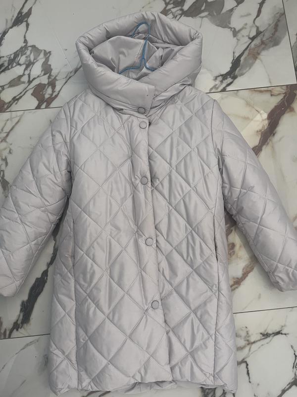 Пуховичок для девочки, размер 140. Наповнювач десь 200/250 синтепон. Есть недостатки незначительные, нет верхней половинки кнопки. Можно поставить другую, если умеете, порованные карманы внутри, тоже возможно зашить