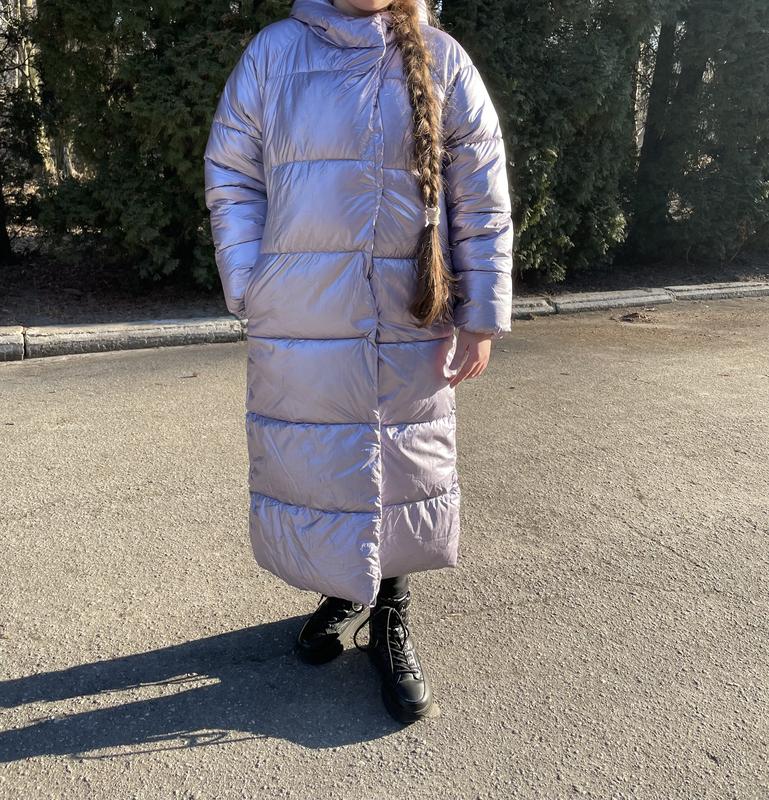 Теплий пуховик на дівчинку. Зріст 152см. Стан ідеальний. Один нюанс з внутрішньої сторони.На фото .