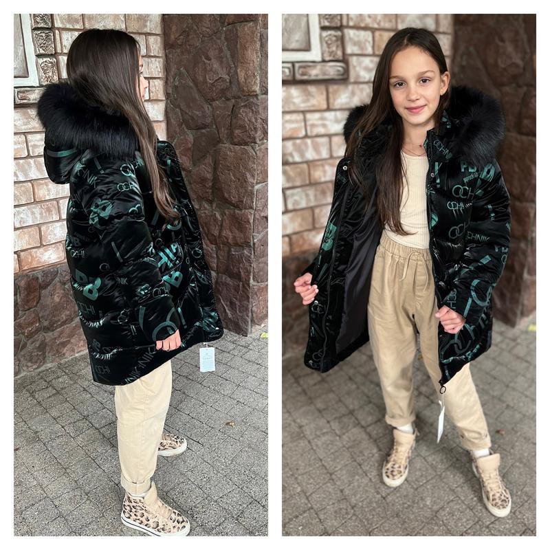 Зимова куртка пуховик для дівчинки -верх курточки - водонипроникна,прорезинена тканина -наповнювач еко-пух,надзвичайно тепла взимку і комфортна для пізньої осені,не важка для дитини -підкладка - нейлон -якісна і дорога фурнітура. -застібається на блискавці -на капішоні дуже дороге штучне хутро,як "натуральне", можно відстібнути -капюшон НЕ відстібний -в рукавчиках є захист від попадання снігу - в капішоні є утяжка Заміри: 116см. рукав від плеча - 42см. довжина - 61см. ширина ( пог) - 42см. 122см. - 44/63/43 128см. - 46/65/44 134см. - 49/68/45 140см. - 51/70/46