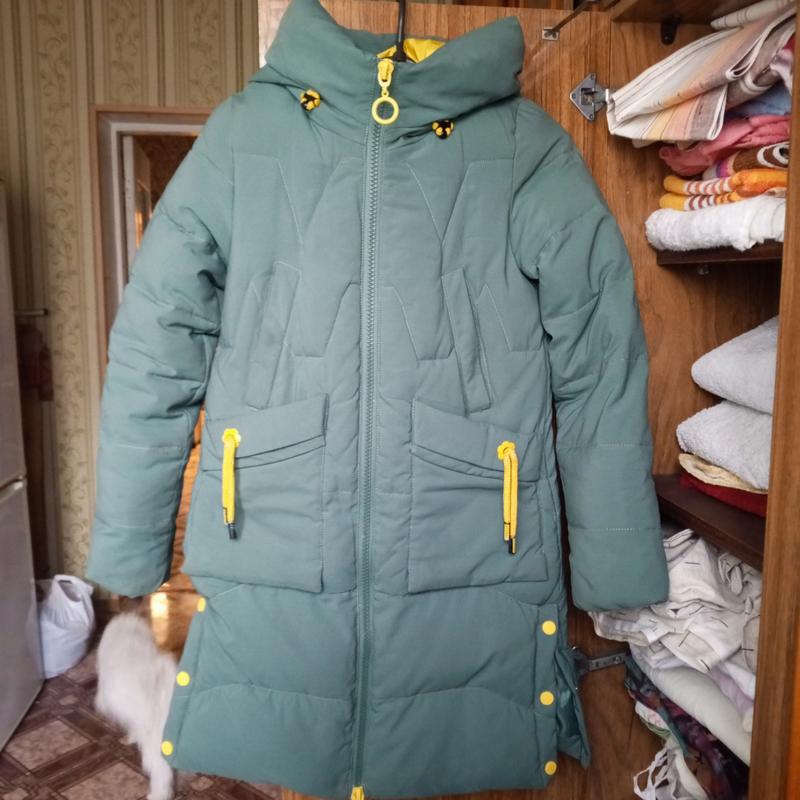 пуховик в ідеальному стані на зріст 134 см. дуже теплий, капюшон не відстібається, 4 кармана, ззаду можна затягнуть шнуровку. довжина 78 см, довжина рукава 58 см, ширина 40 см.
