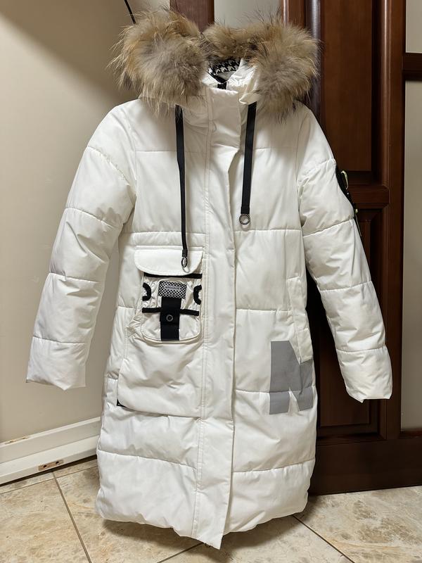 Теплище длинное пальто для девочки, р 158, белое, в идеале )