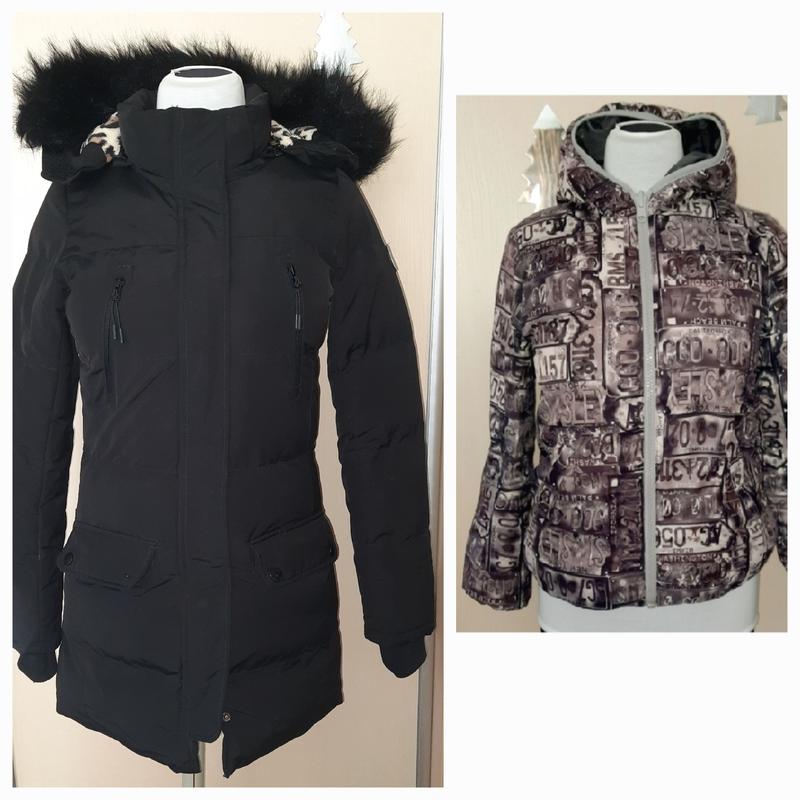 Продам черный длинный пуховик на рост ~146-152 см. Замеры на фото и по запросу. Теплый, легкий, капюшон, мех, карманы (на одном отсутствует 1 кнопка). Цена 300 грн. Куртка до талии на рост -146-152. Двухсторонняя. Серая, рисунок дорожные авто номера. Демисезонная, с капюшоном. Легкая теплая. (Сбоку по шву зашитый участок) Цена 200 грн