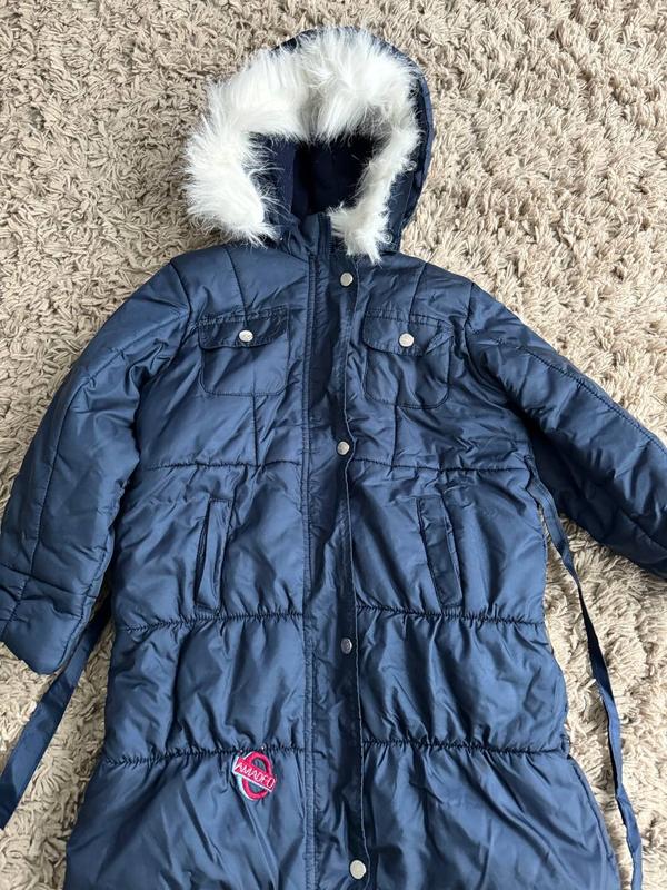 Зимняя длинная куртка очень теплая Производство Польша Amadeo Замеры на фото Размер 122 Состояние отлично Капюшон и мех отстегивается отдельно