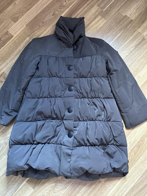 Серый пуховик, размер S/M. На плече небольшие царапины от вешалки. Которые легко можно убрать в ателье