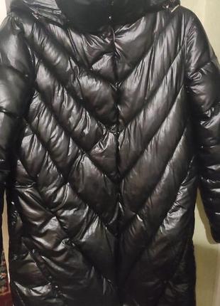 Стильне пальто для дівчинки чорного кольору.Стан відмінний.Капюшон знімається.Наповнювач біо пух,верх поліестер.Плечі 37см ширина під руками50см довжина рукава 56см довжина по спині80см