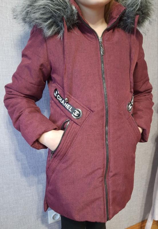 Тепла зимова куртка.. Розмір 128 ( можна носити до р.140). Є манжети, капюшон знімається. Куртка дуже тепла. Заміри надам за потребою. Є 1 нюанс (порвалася тканина всередині кишень).