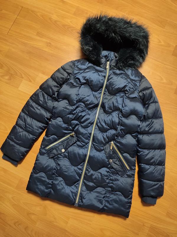 Куртка пуховик пальто F&F в темно синем цвете. Куртка на девочку 12-14 лет.