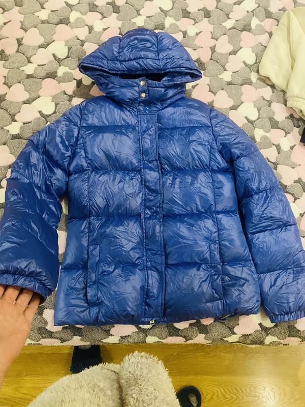 Из подростковой серии. Я покупала себе на хс. Есть дополнительный пояс. Натуральный пух белой утки. Очень тёплый. В химчистке не нуждается. Пух как облачко.