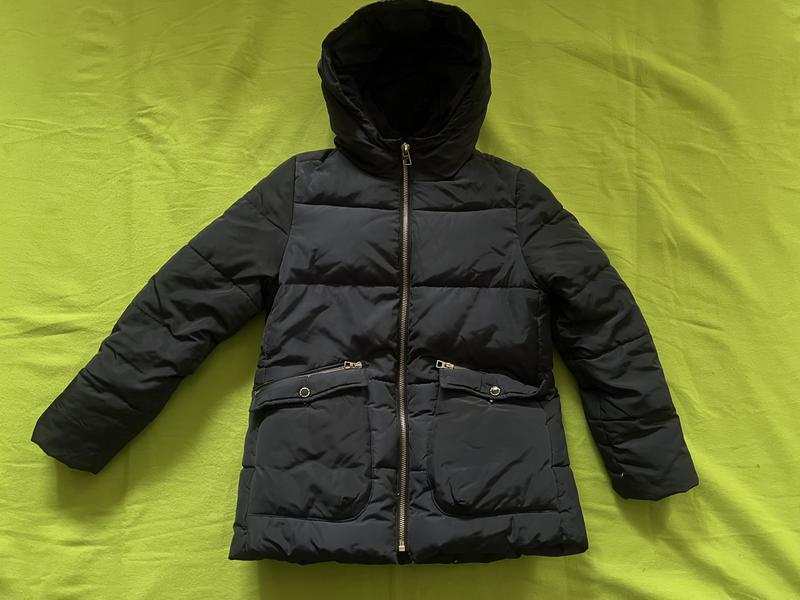 Пуховик для девочки от Zara, темно синего цвета. Рост 164 см.