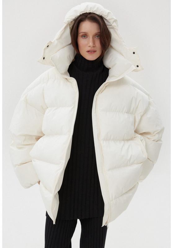 Молочний пуховик від українського бренду Estro Новий✨ Дуже теплий і обʼємний Вказаний розмір XS, але він дуже обʼємний і сяде на будь-який З величезним та комфортним капюшоном Мій зріст (останню фото) 162см, розмір S