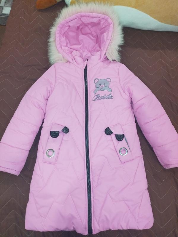 Очень теплая зимняя куртка (пуховик) для девочки 6-8 лет, синтепон, флисовая подкладка, манжеты. Без дефектов, молния исправна. Мех на копишоне отстегивается. Реально носили в мінус 20 Можно стирать в стиральной машине