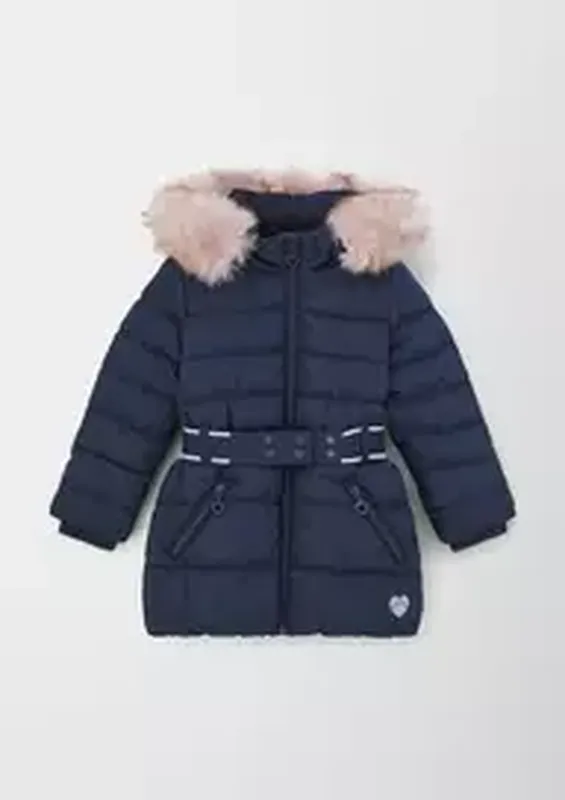 Теплый пуховик для девочки. Капюшон сьемный, мех тоже. Рукава на флисовых манжетах. Размер 104