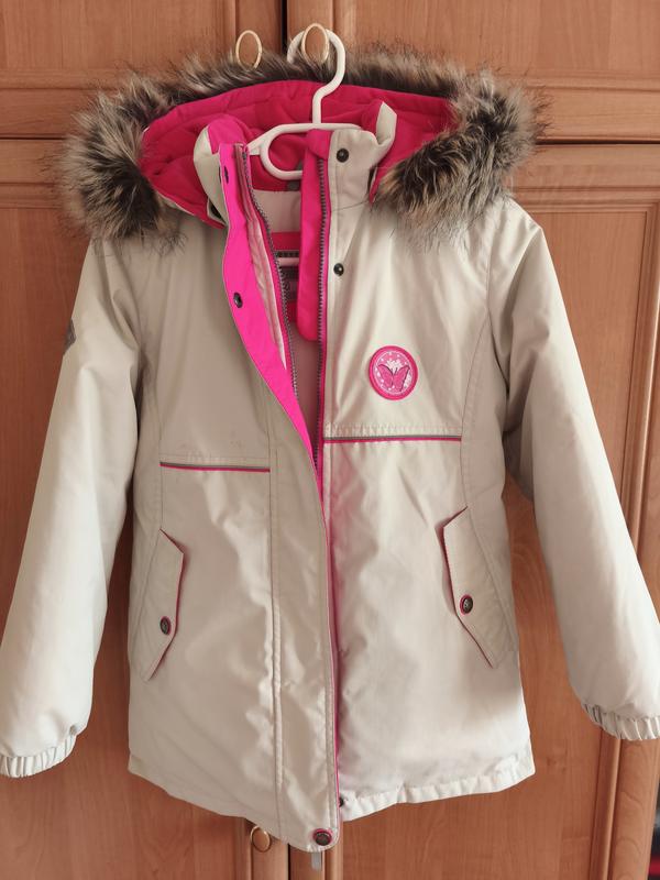 Куртка в идеальном состоянии на девочку 8-9 лет размер 134 бело-розовая, очень теплая, водонепроницаемая. Капюшон отстегивается.
