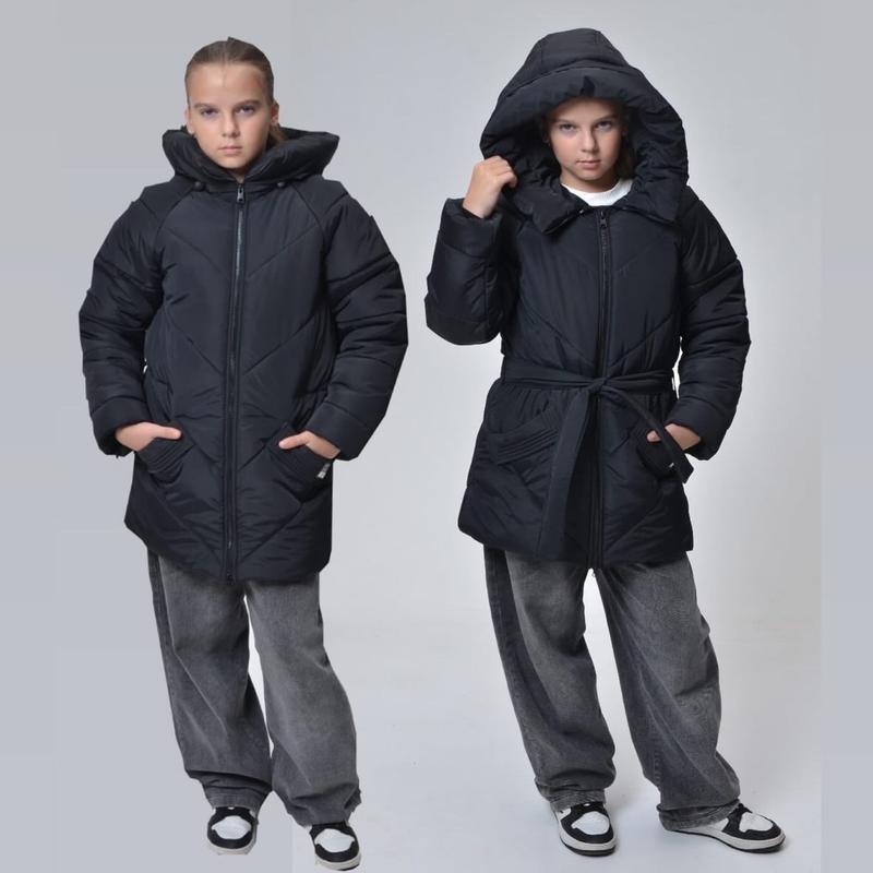 Зимова куртка пальто з поясом для дівчинки 140, 146, 152 см