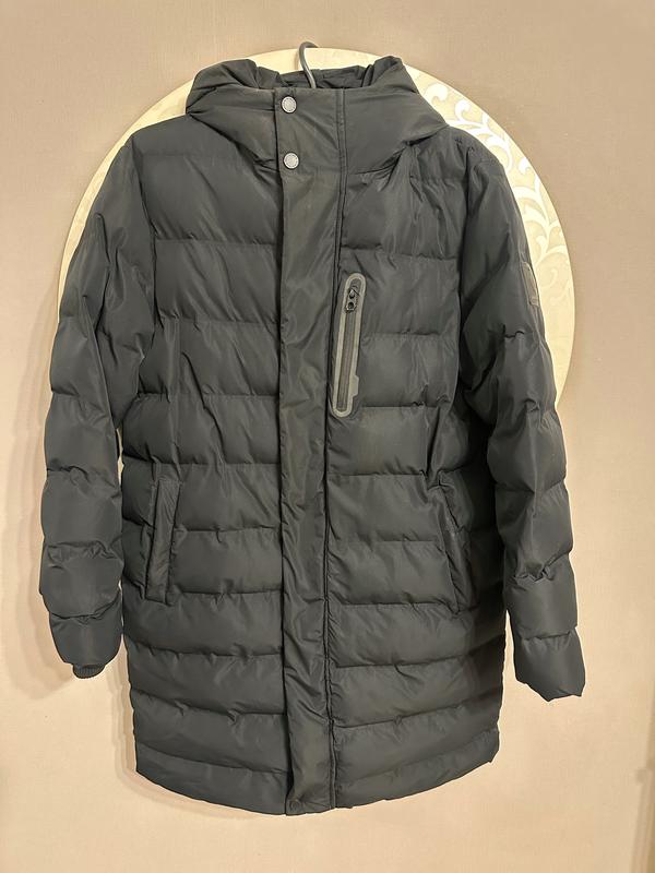 Зимовий теплий пуховик на підлітка в ідеальному стані,одягнений декілька разів Повномірний,колір:насичений чорний,вказаний вік 14 років Фурнітура якісна,ціла