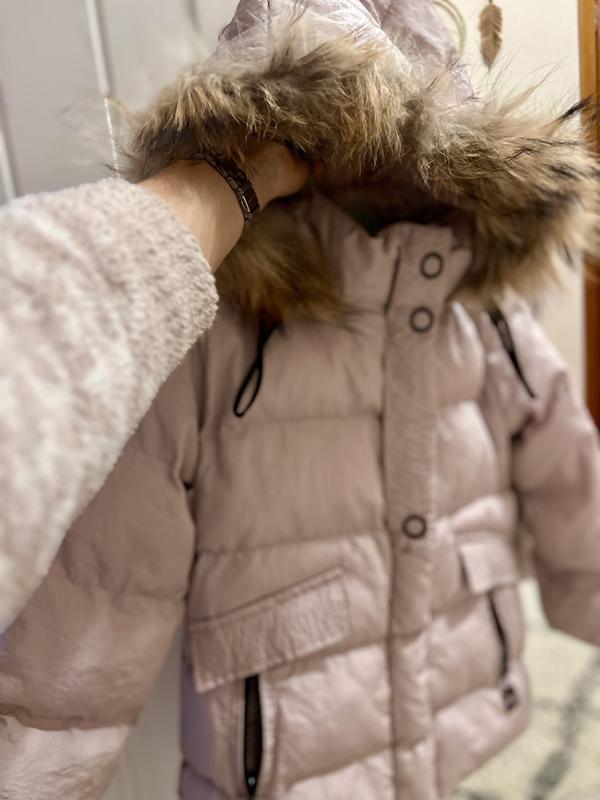 Пуховик зимовий в дуже гарному стані. Теплий, красивий, зручний, легкий. Капішон з натуральним хутром (потрібно розчесати, бо примʼялось, через те що лежало складеним). Не секонд, після можї дитини. Купувався новим. Фірма якась італійська. Переться гарно, наповнювач не збитий і добре прошитий. Колір блідо-рожевий, швидше до пудрового. На вік 5-6років. Розмір - 116-120 За потреби - зроблю заміри. Ціна символічна.