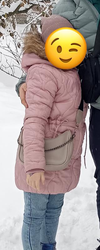Хороший пуховийчок демісезонний на дівчинку 9 10 років, довжина 70 см, рукав від плеча 53 + 3 см резинка, бід грудими пів обхват 40