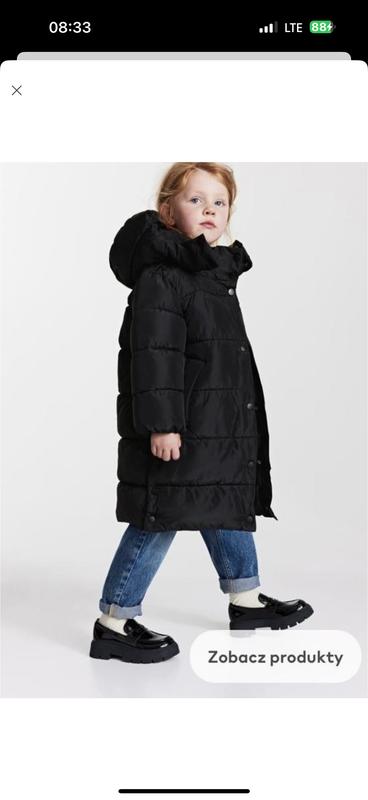 Довга стьобана куртка пуховик H&M, зимова Розмір 6-8 122-128 Комір-стійка, відстібний капюшон, застібка на блискавку з підборіддям і планкою на кнопках. Прорізні передні кишені, прихована гумка на манжетах, довгі розрізи на застібках внизу куртки. пог 45 довжина 80 рукав 45 плечі 34