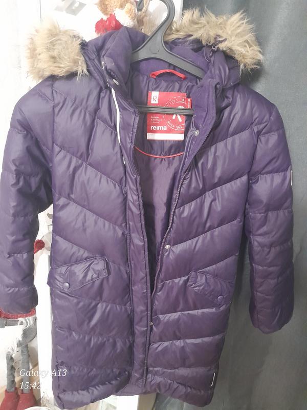 Пуховик куртка в идеальном состоянии на 140 рост, одетая несколько раз. Куплена в Европе Бренд Reima. Длина 79 см. Плечо 9 см. Длина рукава от плеча 50 см. Пог 38 см, по низу куртки 49 см. Капюшон отстегивается. Стан идеален.